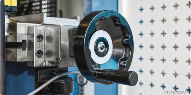 - Aizmugurējās atdures attāluma regulācija (X ass): servo piedziņa